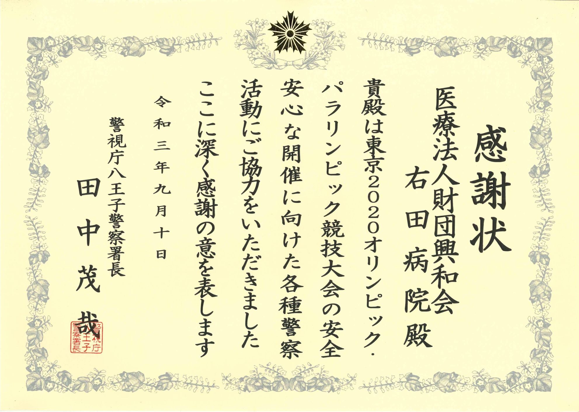 感謝状 R3.9.10