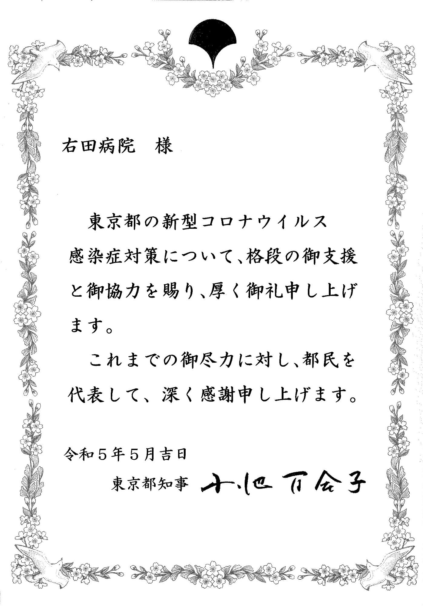感謝状 東京都より R5.5